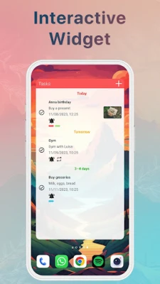 Add the to-do list to your home screen for a comprehensive overview of your tasks. The interactive widget allows you to check off and create tasks without opening the app.