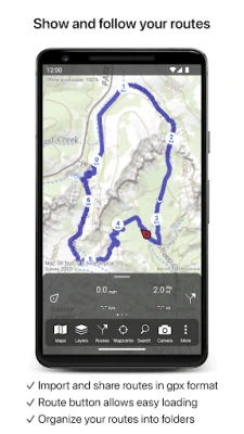 * Importing and exporting waypoints in gpx/kml/kmz/csv/geojson format.