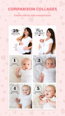 Create heart melting collages. Be amazed at how your bump and baby have grown with this unique keepsake feature.