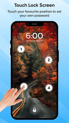 Say goodbye to traditional passcodes and embrace the future of mobile security with Touch Lock Screen Photo. This Finger Lock Screen app allows you to set a touch password, utilizing the unique patterns of your fingertips for enhanced protection. With options to select images from your gallery or capture new ones with your camera, you can personalize your phone for added security.
