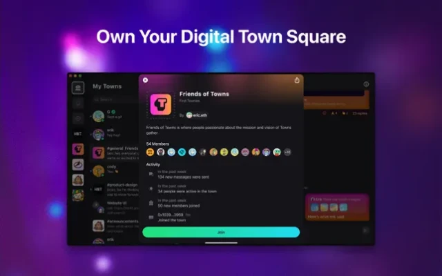 2. Digital Communities (Towns): Users can create or join "Towns," which are customizable spaces for like-minded individuals to gather, share content, and interact.