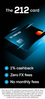 - Trading 212 Card - experience revolutionary low exchange rates and get 1% cashback until 15 July 25, 0.5% thereafter;