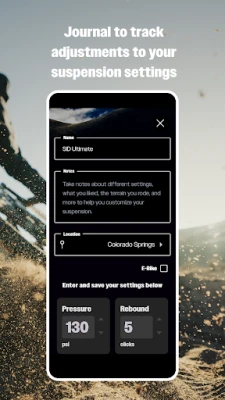 ▸ Journal feature to track adjustments to your suspension settings, and capture on-trail insights to analyze and improve your ride experience