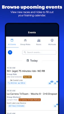 Use the TrainingPeaks Hub to: - Chat with your teammates and other racers in the Virtual world - Browse and see details for upcoming events - Join future races that fit your training calendar - More features coming soon!