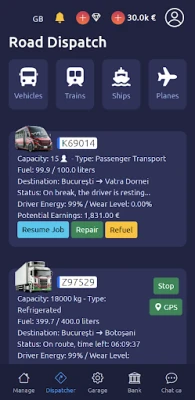 Take on transport jobs and earn money – Use your fleet to move cargo or passengers between cities. Plan your routes wisely to maximize profits!