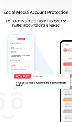 Be instantly alerted if your Facebook or Twitter account’s data is leaked by cybercriminals.