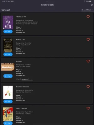 Looking for your next favorite card game? Look no further than Trickster's Table! Our app offers a clean interface for modern trick-taking games. Play against AI opponents trained with the latest in reinforcement learning algorithms. With many modern trick-taking games being added frequently, you'll always have a new game to master.