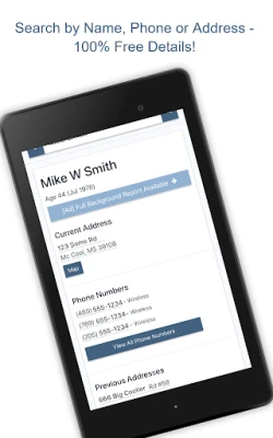 Results are like a free background check and include current and past addresses, all known phone numbers associated with the person, relatives, associates, email addresses, and possible business listings. And it's all free unlike most other people finder apps!