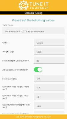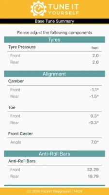 *Try it for free, full version requires a paid subscription*. Tune It Yourself makes use of the in game telemetry feed and advanced algorithms to tune each race car to the driver and circuit conditions.