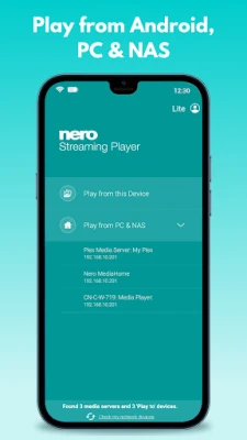 Just launch the DLNA/UPnP compatible media server on your PC & NAS. Nero DLNA/UPnP Streaming Player will show a complete list of all available servers. Select your preferred one and browse or cast all media located on your PC & NAS to Smart TV.