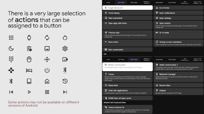 Some actions may not work on your device. It depends on many factors such as your firmware, Android version etc. Please notify the developer if something goes wrong and refrain from giving the app a poor rating since the issue is often out of the developer's control.
