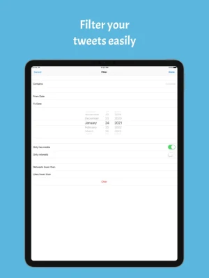 This is where Tweet Cleaning comes in. It saves you time and effort by offering the option to filter tweets by date and keyword.