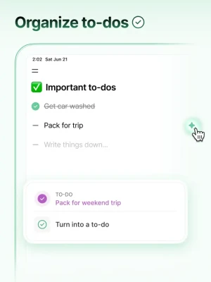 - All-in-One Organizer: Capture notes, create to-do lists, set reminders, and plan events on a single app.