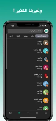* اكتشف الأبواب التي تمثل اهتماماتك مثل الرياضة , الألعاب، تصميم المواقع وغيرها.