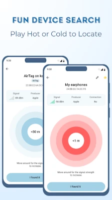 As you move closer to your lost device, the app indicates "Hotter", and as you move away, it signals "Colder".