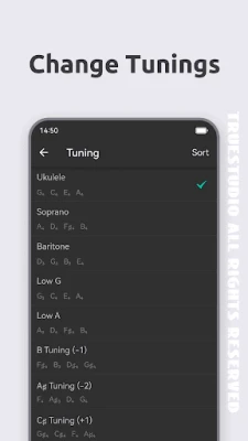 Ukulele Tuner uses your phone's microphone to listen and analyze the sound in real time and recognize which string you are playing, indicate if your string is too low or too high.