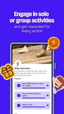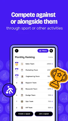 Alone or in a team, take part of monthly challenges to support a charity or to be motivated to be more active.