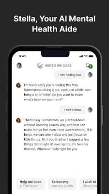 Step into a new era of mental wellness with United We Care—a transformative app powered by Stella, your AI mental health and wellness coach. Built on over 150 years of clinical expertise and state-of-the-art Generative AI, United We Care offers personalized, accessible, and secure mental health support. Whether you're seeking daily guidance, professional care, or self-help tools, Stella is your trusted companion every step of the way.