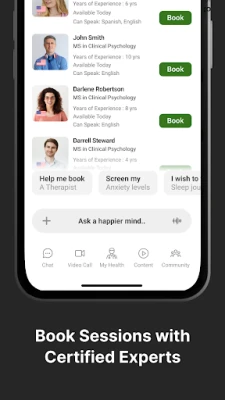 Expert Booking: Access licensed therapists listeners and coaches based on your location and preferences.