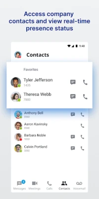 The UNIVERGE BLUE CONNECT Mobile App transforms your mobile phone into an essential collaboration tool, making teamwork on-the-go easier than ever. Place and receive calls, see who is available, chat with colleagues, start video calls, share screens, and manage voicemails all from one application – anytime, anywhere.