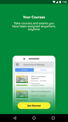 The University of SUBWAY® is a free online training tool for SUBWAY® franchisees to use to help train their employees. SUBWAY® restaurant owners worldwide can use this tool to assign courses and quizzes to employees to take on their tablets and mobile devices. The app is localized in 8 languages (English, Spanish, Portuguese, German, French, Chinese, Korean, and Turkish).