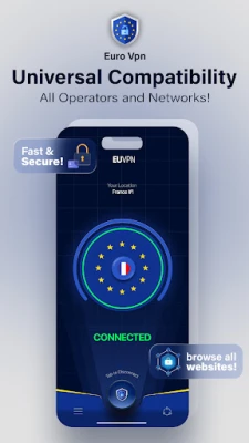 "Europe Turbo VPN" is a powerful and secure application designed to provide you with unrestricted and private access to the internet, whether you're in Europe or anywhere else in the world. Our advanced VPN service ensures that your online activities remain anonymous and your personal data is fully protected through high-level encryption. This app is the perfect solution for users seeking a safe, fast, and reliable way to access open internet in environments where restrictions are present.