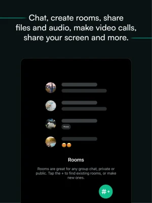 Calls- make one-on-one or conference audio and video calls. You can also share your screen.