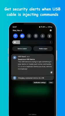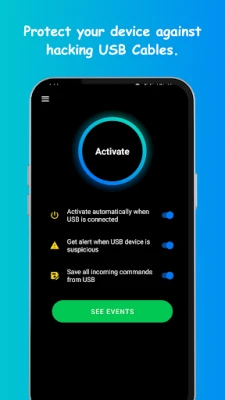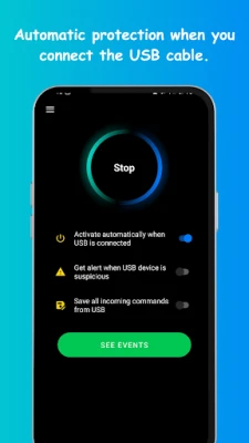 USB Blocker "Security & Anti Hack" is a powerful spyware detector designed to protect against hacking cables and malicious USB devices. These hacking cables may appear as normal chargers but can actually execute harmful actions, spy on you, and compromise your data security. Malicious cables often act like a USB keyboard to inject spyware, malware, or keylogging commands into your device, allowing hackers to control your device, access sensitive data, or even install malicious software without you knowing.