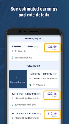 Schedule rides in advance and always see the estimate of what you’ll make before booking a ride.