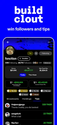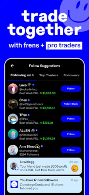 - Group Collaboration: Trade together in private groups, earn fees when you share a trade, and top the leaderboards.