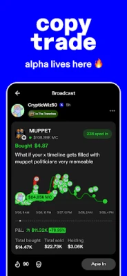Trade any token instantly and securely on Solana, Ethereum, and Base — all in a single app with Vector. Ape into memecoins with your friends with real-time trade alerts, and climb to the top of the leaderboards for ultimate bragging rights.