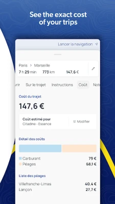 - Make the cost of your trip more precise by using various available options such as vehicle type, specifying the exact fuel price, avoiding tolls.