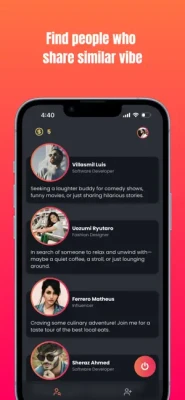 Instant Connections: See who's around you in real time. If both moods align, you can start chatting and meet up in minutes. It's spontaneous and simple.