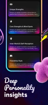 Get personalized, AI-driven conversations and insights based on your moods and personality (Premium feature). Understand your “Traits, States, and Mates.”