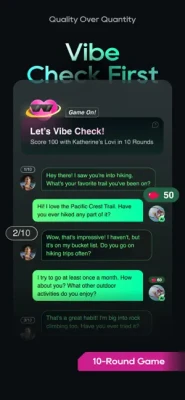 3. PLAY THE VIBE CHECK GAME: Engage in a 10-round chat with AI avatars to test compatibility.