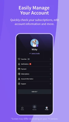 It provides all of the functions of your TV remote and more. Key Features: - Power On / Off - Volume Control - Change Channel - Share Video / Music / Photo to TV - Search VoD