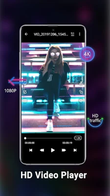 HD video player is the easiest phone video player, has a powerful video decoding capabilities to easily support you play almost all video files stored on your phone.