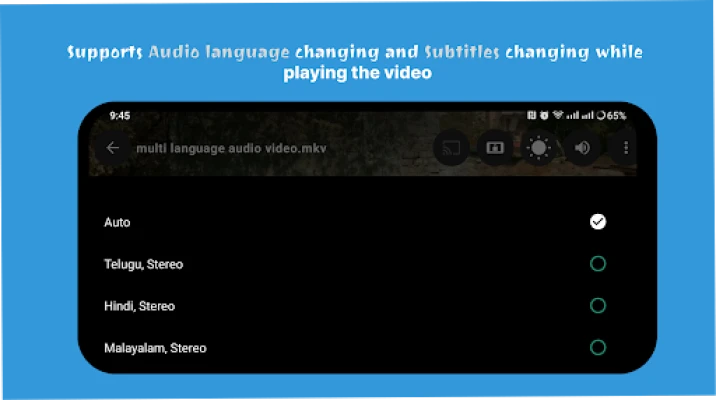 ● Multi playback option: auto-rotation, aspect-ratio, screen-lock etc.
