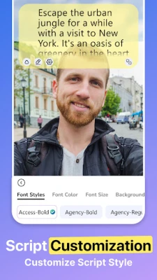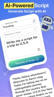 Download the Video Teleprompter for Scripts app to display scrolling text on the screen, record a video and create auto captions. Write a script, generate it with AI power, or import it from your device memory. You can also edit the text style and background color for more attraction.