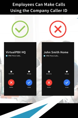 • Outbound calls use your company caller ID, instead of your personal phone number.