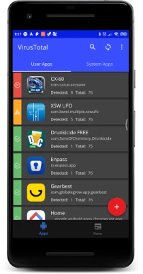 In this new version, in addition to analyzing all installed applications and to upload them if they are not in Virustotal, any file or url can be analyzed either from the application itself or another application.
