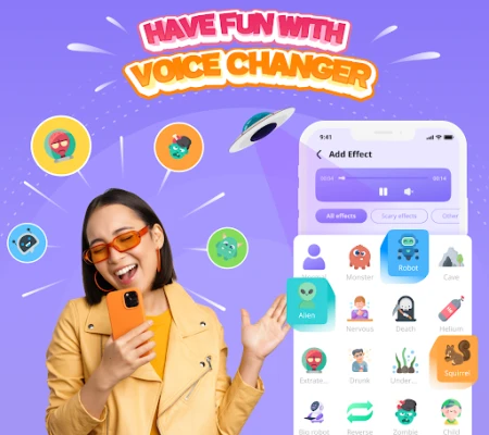 Welcome to the Voice changer & Sound Effects app! This voice changer with effects app will turn your voice into a unique and entertaining musical masterpiece. Are you ready to explore distinctive sound effects and create imaginative audio recordings?