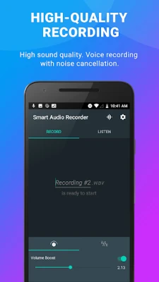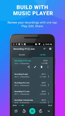 With a wide variety of options for refining recordings, this audio recorder for android is useful for rehearsal and audio-visual sessions. Quickly try new ideas, hear the results and make new changes. You can quickly switch between voice recorders, meetings, lectures, music and sound rough with settings and extremely easy to use presets.