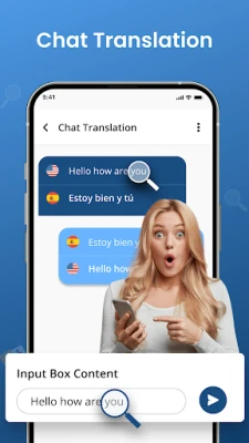 With the Chat Translator, Photo Translator, and Camera Translator, you can easily translate Spanish to English, paragraphs, or phrases. Convert text using both audio and text translators or any language translator app with the Camera Translator. Speak and translate effortlessly with the Spanish to English Translator, voice-to-text converter, and multilingual speech recognition in the chat translator feature.