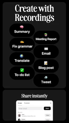 Apple Watch & Wear OS — including a watch face complication for instant recording, and a Wear OS tile for quick access to your recent notes.
