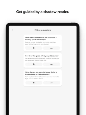 - Explore your ideas further. Engage with our built-in shadow reader to delve deeper into your thoughts and enhance the depth of your content.