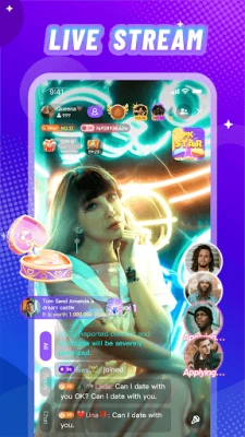 ● You can create a party room holds up to 4、6、9 participants,Singing、chatting、learn a foreign language with your friends and fans.