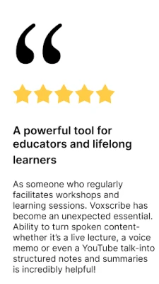 Download Voxscribe today and leverage your voice as your most powerful tool. Join thousands of satisfied users who are transforming their content engagement with Voxscribe.
