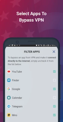 • Bypass VPN: Allows selective apps to connect to the internet directly