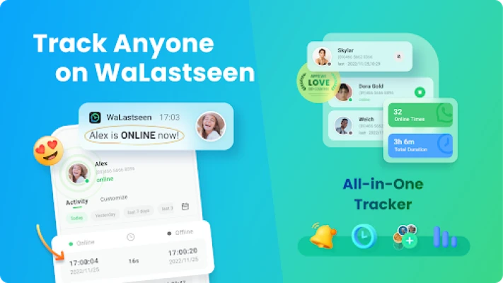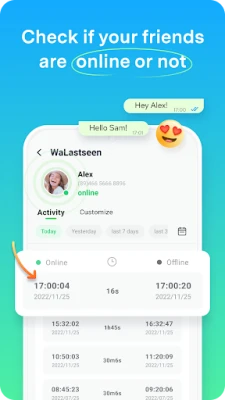 WaLastseen is a very powerful yet simple lastseen Messaging App tracker, and you will find it easier than ever to know the activity on WhatsApp, WhatsApp Business, and other apps. With WhatsApp tracker-WaLastseen, you can easily analyze in depth the usage and daily patterns of the one you track and know their lastseen status even they hide their status in WhatsApp. 🤩 WaLastseen can assist with social status control between couples, friends, parents, business partners, and a variety of other use cases!